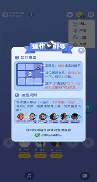 1、支持全球多人在线竞技,最多容纳 5 人同场 PK,好友排行实时更新,让玩家在自由对决中突破极限,体验紧张刺激的扫雷大神之路。