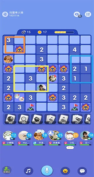 有些时候你会发现大家都统一来到了某一个方位,例如说都来到了左上角,虽然都没有站在一个格子里,但这也证明这块区域附近的雷大家已经摸透,那么你的下一步棋就需要远离这个区域了