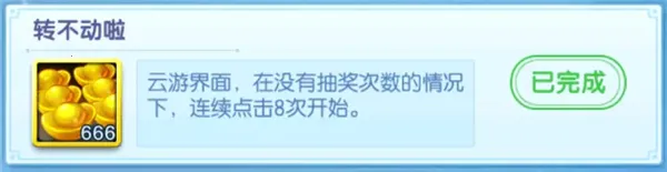 在云游界面的三十次抽奖轮盘中,没有奖励的情况下,连续点击开始八次