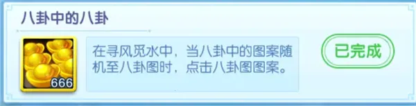 在仙府右下角风水中的寻觅风水中,点击到中央随机变化动画中的八卦图