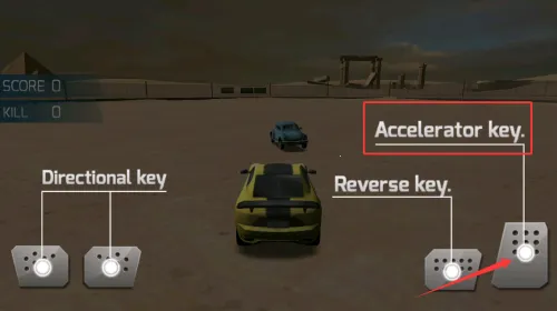 3、跟随箭头提示,尝试撞击前方蓝色汽车。