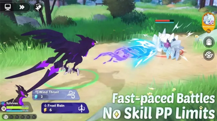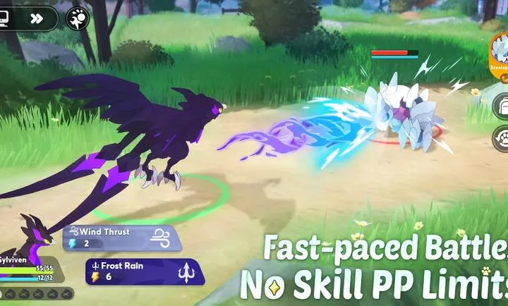 3. 快节奏战斗与海量技能卡池:告别传统PP限制,每场战斗仅需一分钟,节奏紧凑。提供超100张技能卡,每只卡米可学数十种技能,自由搭配构建战术,让战斗充满变数。