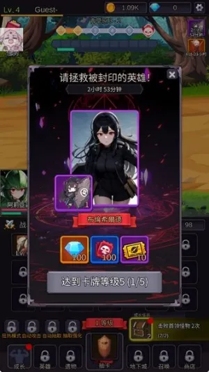 这款游戏以美少女卡牌养成为主题,玩法丰富。玩家成为魔法使召唤少女对抗魔女拯救世界,开局有细致诅咒背景介绍。前期要躲避魔女追杀,众多少女装备随机抽取,换装能形成独特作战效果。