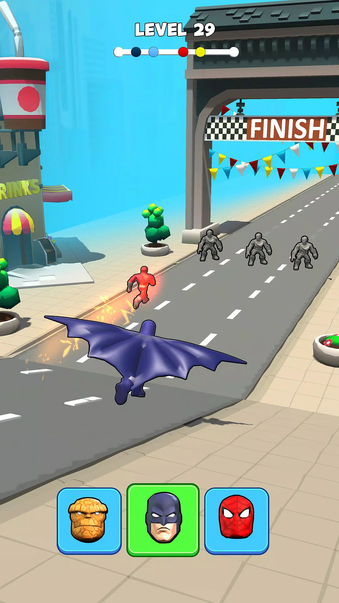 在超级英雄跑酷游戏中,有着独特魅力。玩家要根据游戏情况变身超级英雄,这是一大特色。面对关卡末尾的独特障碍与敌人,需凭借角色能力应对。竞赛取决于自身,要在恰当时间改变超级英雄形态。游戏玩法简单,点击屏幕就能按喜好将英雄变成任意形状。而且操控简便,能运用变形技能清除障碍,凭借超级英雄能力完美跨越障碍,让玩家充分享受变身与跑酷结合的乐趣,体验成为胜利者的快感,随时准备迎接新挑战。