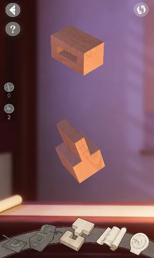 1. 感受千年木作结构美学:以榫卯题材为主的空间解谜是核心玩法。通过观察榫卯图纸,想象组合结构,点击消除等操作打磨零件,拼合指定榫卯结构,解开空间谜题。