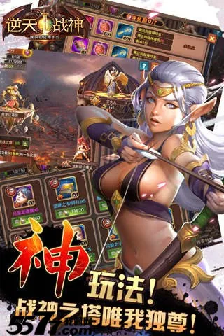 《逆天战神》是一款魔幻卡牌游戏,特色十足。**它有着色彩鲜明的人物形象,以大型魔幻风格为主要元素并融入卡牌玩法**。能让玩家随心搭配海量装备,创造完美战神,还可带领团队。游戏独创可占领争夺式副本城池及战神之塔等对抗玩法,PVP交互爽快。史无前例加入主角扮演、战神养成等强RPG元素,融合参与式剧情设定,增强成长感与目标性。画面采用精美细致特效设计,3D视觉精美绝伦,高掉宝率能打造强大装备,搭配出完美战神设备,带来极致热血体验。