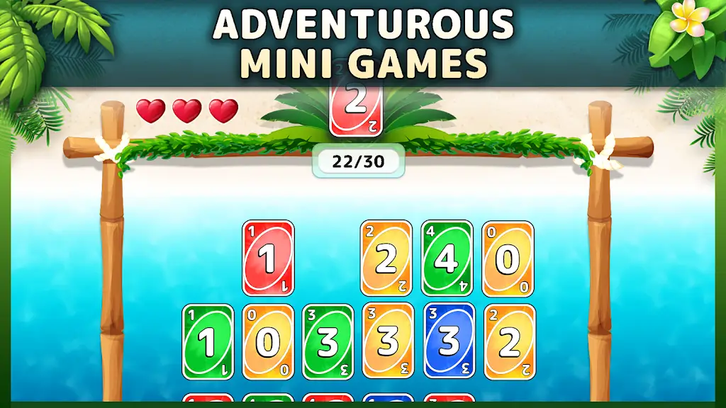 想知道狂野卡牌派对冒险怎么玩?这游戏玩法超简单!它延续经典UNO规则,出牌要保证颜色或数字与上一张相同,先出完牌的赢。1按钮提醒机制很关键,出倒数第二张牌前按,不然罚两张牌,增加了策略性。没网络也能玩离线冒险模式,和智能电脑对战,10个难度阶段帮你巩固牌技。在线模式玩法多样,支持2到4人同场竞技。游戏还有丰富内容,像卡牌收集挑战、动画头像、宝箱刮刮卡等。多场景多房间,能自由选喜欢的场景和全球玩家组队。特殊卡牌让游戏节奏更刺激,能扭转战局。还支持自定义背景音乐,营造专属氛围。不管是想和朋友休闲娱乐,还是争强好胜来场对抗,它都能满足你,赶紧来体验这独特的卡牌冒险吧!
