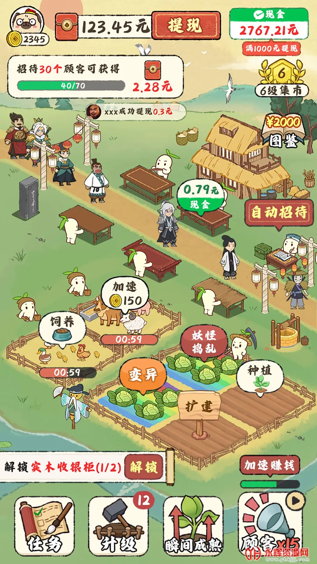 想知道田园小镇在哪里?其实它就在你的手机里!田园小镇是一款超棒的模拟经营游戏。在这里,你能成为农场主人,自由建造农场,装扮各种道具。游戏玩法丰富,农作物类型多样,可自由选择种植,还得按季节管理工作。你能出售农作物换金币买种子,照顾家禽让农场更有生机。它的亮点超多,有完整产业链体系,每周还有丰收大会。还有独特的直播玩法,结合当下流行的网络直播和模拟经营,让你体验种田带货的乐趣。画风清新治愈,能帮你放松身心。而且田园小镇红包版还能边玩边赚钱,完成订单就能得奖励红包,0.3元就能提现。不管是想体验田园生活,还是找点休闲益智的玩法,田园小镇都能满足你,快来下载开启你的田园之旅吧!
