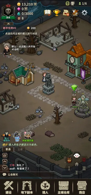 游戏中,你可以通过建设地下副本、猎人主城、仓库和商店等,不断发展村庄。点击小人物图标能看到任务要求,建设治疗所等建筑可完成任务获奖励。进入地下副本界面建设入口后就能探索副本。还能在猎人界面查看猎人详细属性,在主城仓库管理装备等资源,在商店进行各类购买。上方笔记本图标可查看收集套装和套用Buff的图鉴,奖杯图标能了解成就要求。选择齿轮图标可进行游戏音乐、配置语言等设置,骷髅头图标能切换游戏难度。