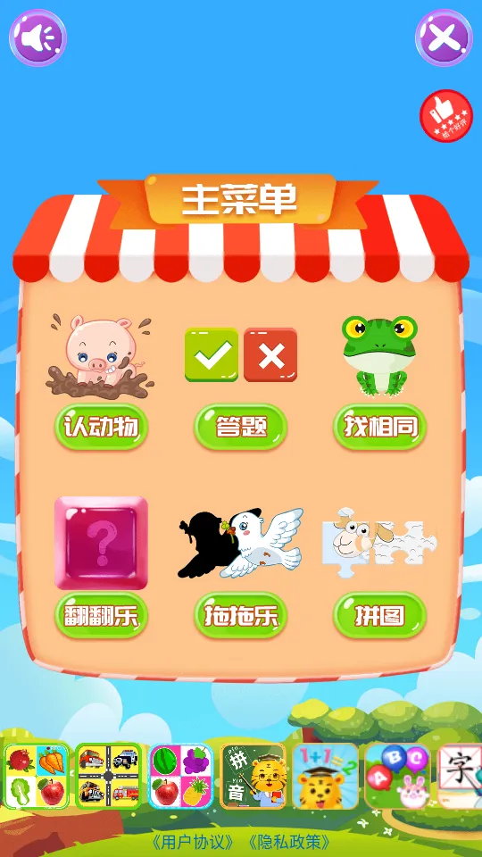 3. 游戏场景色彩明快柔和,动物形象生动拟人化且充满童趣,符合幼儿审美特点,有效吸引注意力并保持兴趣。