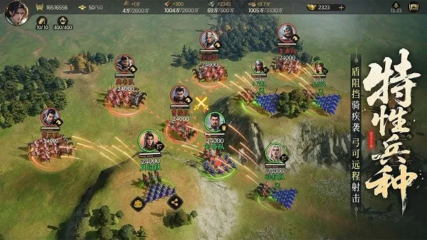 1、多队混战,策略至上:支持多支队伍同时交战,玩家可实时操作各队行军路线收集目标,在类moba战斗中实现微操,打破数值边界,即使部队武将是白板,也十分活跃。