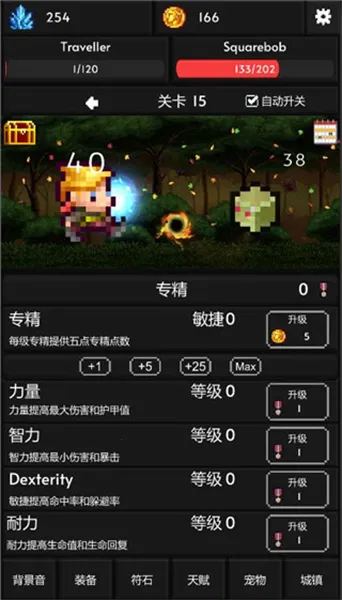 像素世界冒险是一款像素风格冒险游戏,玩法简单,控制主角探索。画面复古,地图广阔。有多种职业、道具,高复玩性。还有自动战斗、Roguelike探索等特色,可自定义角色,在黑洞角斗场与玩家对战。