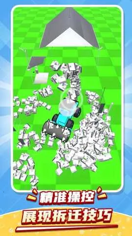 游戏的场景设计也很出色,房屋拆迁的画面精致逼真,从外面用工程车拆迁时,倒塌场面带来强烈视觉冲击,让人仿佛置身真实现场。而且房屋内部有障碍物,需要灵活应对,增加了不少趣味性。
