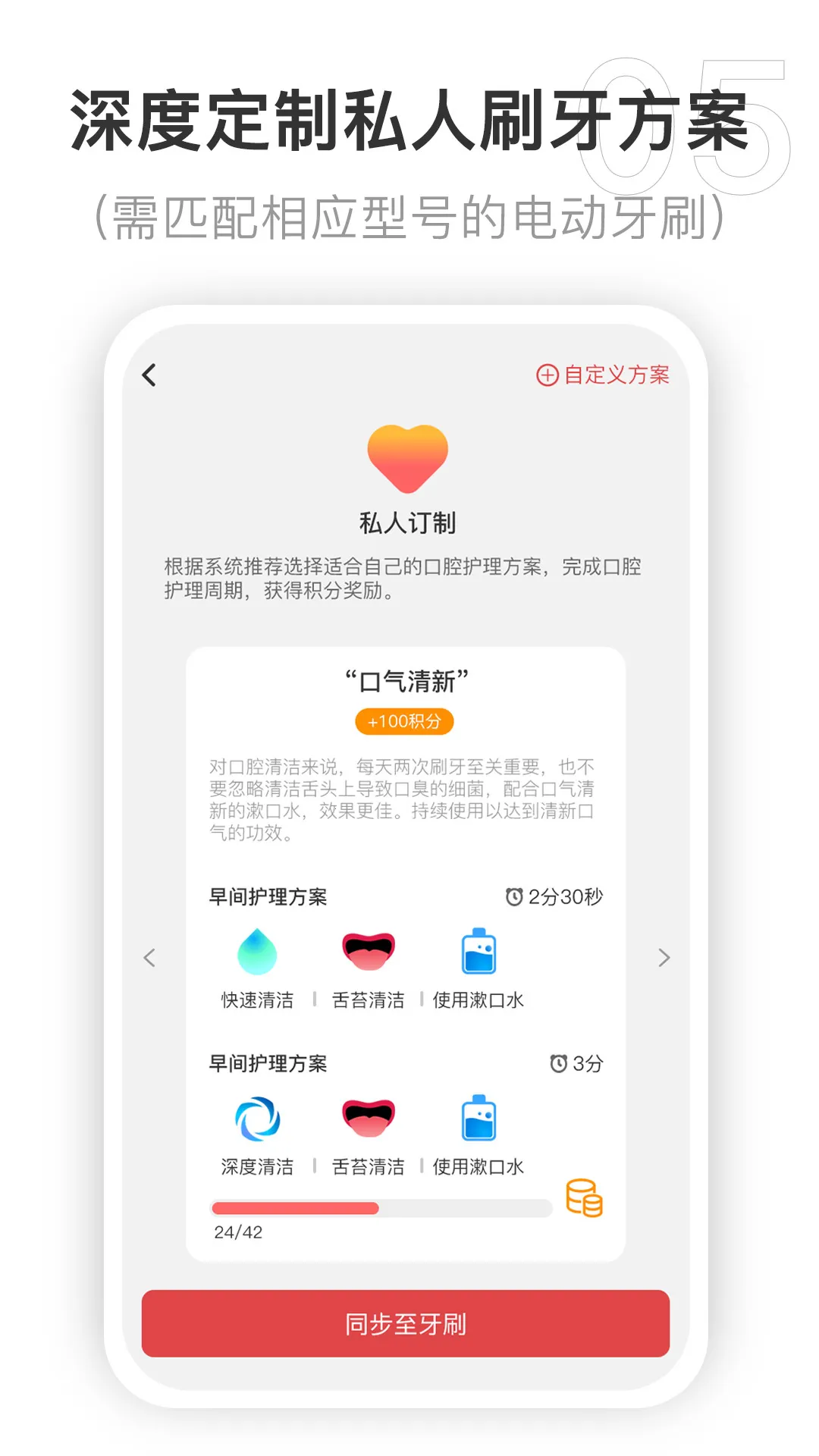 2. 精准护理,个性方案:通过数字化方式实现口腔精准护理及产品分发服务,让用户享受更科学、更舒适化的口腔个性护理方案。