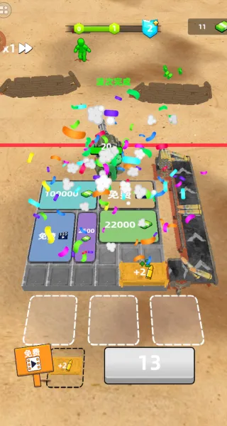 3. 多样战斗技巧:合成高输出属性炮塔针对性克制僵尸,波次间隙侧重选择进攻型属性增益,攻击僵尸瞄准弱点部位可获翻倍收益,组合不同炮塔搭配增益效果突破难关。