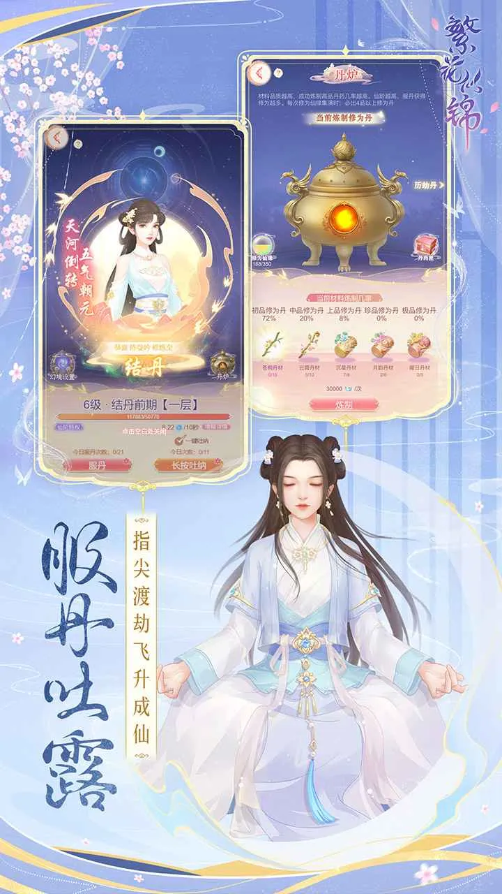 想知道“繁花似锦觅安宁,淡云流水度此生”全诗的意思?来玩《繁花似锦》这款古风修仙手游呀!在游戏里,你能体验高沉浸式剧情,仿佛置身古风修仙小说,修炼历劫、甜蜜邂逅,超有身临其境之感。这里有华丽仙裳任你搭配,各种风格靓服目不暇接,发挥审美创意,做出独特造型。还有四族知己倾情陪伴,不同性格的他们会与你擦出别样火花。游戏玩法多样,能建设仙盟社交,经营庄园、调查探案、比武论道、游历各地。通过打坐、吐纳、服丹提升仙阶,完成副本任务赢取丰富奖励。通关剧情1-9解锁游历玩法,获取各种资源,提升实力,揭开身世之谜。精美的画面、轻松的音乐,带你走进不一样的修仙世界,满足你对古风修仙的所有想象,快来开启这场趣味冒险吧!