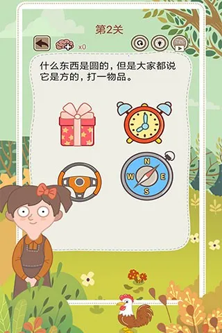 其优势众多,能突破常规思维,激发创造性思维。操作简单易上手,单局时间短,适合利用零散时间玩。还有社交分享功能,可把有趣题目分享给好友。新手攻略也很简单,打开游戏点开始,选关卡游玩,锁定关卡需解锁前置关卡,答题正确点击进入下一关。快来挑战,丰富你的见识,锻炼思维能力吧!