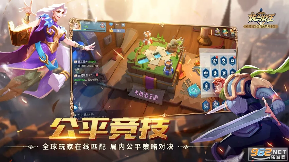 《拔剑称王最新手机版》特色十足。它融合军事策略与角色养成玩法,带你重返中世纪战场。采用快节奏对局设计,画面是清新卡通风格。国内同服公平匹配,告别滚服。每局随机出生地点和对手盟友,充满变数。能集结亚瑟王传说中的英雄骑士,开拓疆土。利用碎片时间就能完成精彩对决。一比一还原实战棋盘地图,沙盘竞技即时操控,让你实时掌握战局,在混乱中杀出重围,书写英雄传奇。