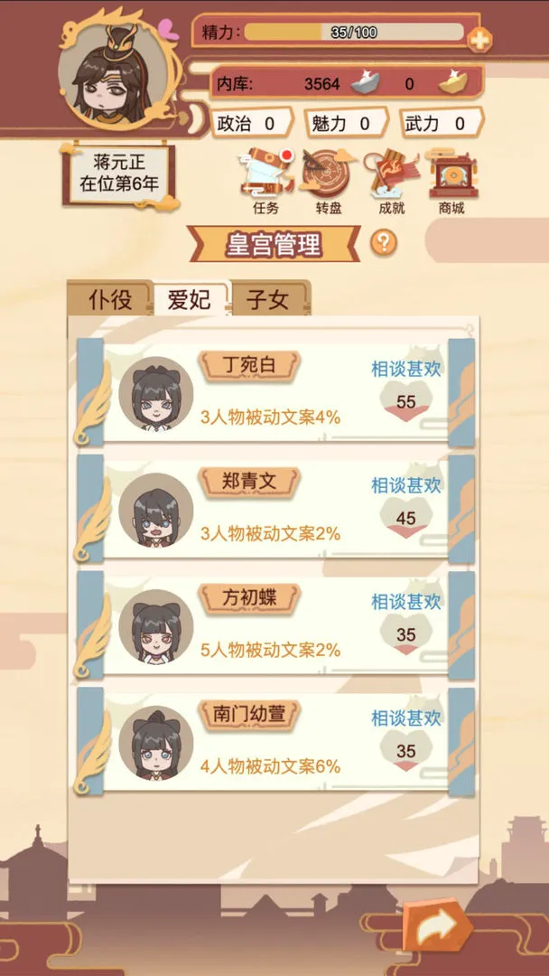 这款皇帝模拟器游戏体验感超棒!画面精致,特效绚丽,场景恢弘,古风韵味十足,让人仿若置身古代。剧情原创且代入感强,从高中状元上任开启官场风云,面对各方势力交错,很考验策略智慧。娶妻纳妾玩法丰富,佳人众多任你挑选。告别传统枯燥模式,官场权谋智斗超有趣,与玩家交锋很是精彩。玩的时候能真切感受到治理国家的艰辛与荣耀。通过发布政策、招募贤臣、管理军事等增强国力,处理各种政务与事件,每一步决策都影响重大。在这过程中,能充分体验到成为一代明君的不易与乐趣,强烈推荐给喜欢策略模拟游戏的玩家!