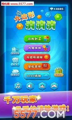 想知道六边形消消消游戏技巧?这款游戏绝对能满足你!它玩法多样,融合了多种经典元素,像2048、俄罗斯方块等。游戏里有六角消消、四角拼拼、旋转魔方等多种模式。六角消消是让不同方块落至六边形消除同色三个方块;四角拼拼把方块拖入方格,同色同点一排三个消除;旋转魔方连满一圈同色方块消除。还有1010消除、六角拼拼、学霸消除、皇上驾到、皇后吉祥、六边形消除等特色玩法。这里没有时间限制,只有空间限制,你可以尽情发挥。合成时连续消除次数越多,分数与特效加成越厉害。拖动底部六边形就能放置到棋盘空白处,相邻同色块或同字母块达三个以上可合成新的。它规则简单易上手,能锻炼思维与操作能力,给你带来全新的益智乐趣,快来试试吧!