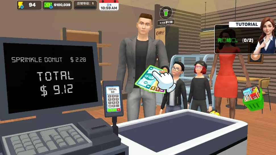 玩法很简单,进入游戏点击商店进货,货物到了拾取摆上货架,再设定合理售价,然后在收银台开始售卖。顾客现金付款就点击商品显示价格、接钱找零,信用卡支付则直接输价格完成交易。一天经营结束后还能看到成果。游戏特色满满,可自主摆放商品、定价,生意做大能雇店员帮忙,还能搞营销活动吸引顾客。亮点也不少,优质服务让你轻松享受经营乐,收益增加可扩张店面解锁更多区域,而且随时随地都能玩,不断经营还能解锁更多内容。快来试试吧!