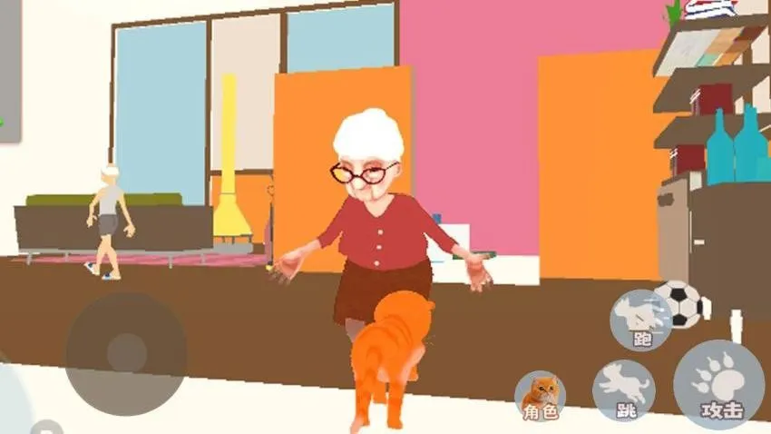 3. 丰富破坏玩法:简单动作控制,有跳跃、攻击等按钮,能跳跃到桌子上破坏物品,在房间移动可找到多样破坏玩法。