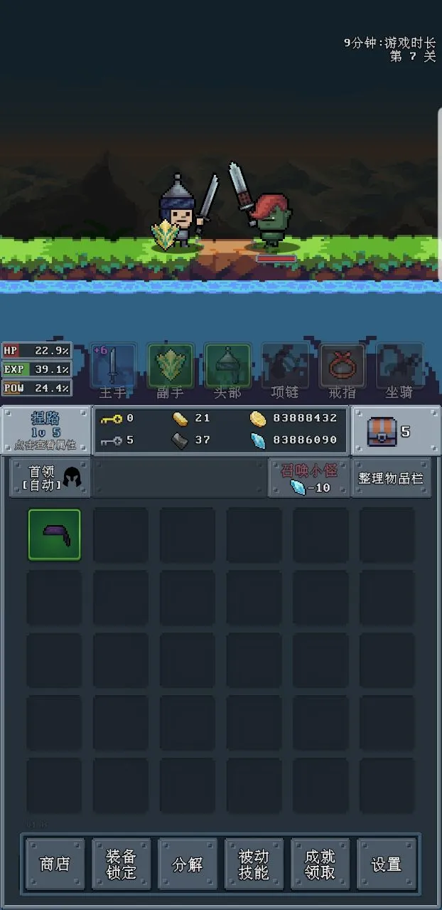 河堤战士是像素风格冒险战斗游戏,玩家扮演战士冒险闯关,击杀怪物获装备道具武装角色。有丰富武器技能,自动战斗,独特像素风,还有成就系统,通过升级武器、购买道具提升实力,不断解锁新内容。