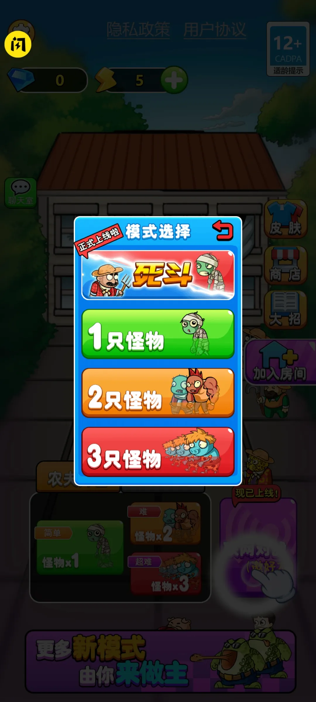 3. 轻松休闲模式:玩家在线随机匹配,通过策略和队友配合击败僵尸。