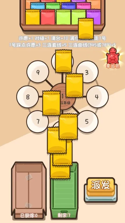 乌龟对对碰纸牌玩法超有趣!它是一款创新消除手游,以可爱乌龟为主题。玩法简单易上手,有九宫格等模式。玩家先选幸运色,点击派发乌龟,让相同颜色的乌龟碰撞消除就能获奖励。这里面有多种关卡和挑战模式,可按需选择。许愿机制很有意思,提前许愿想要的颜色,拆出该颜色乌龟就能得额外拆包机会。消除方式独特,引导乌龟碰撞连接消除,还有连击奖励机制。游戏画面的乌龟图案生动可爱、色彩丰富,配上轻松欢快的背景音乐,带来愉悦视觉与听觉享受。它随机性强,无需长期投入思考,减压效果显著,能让你在休闲时光享受消除乐趣,收获满满的成就感,快来试试吧!