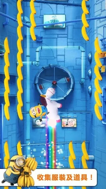 3、**可爱小黄人及装扮**:小黄人形象可爱至极,可用收集的香蕉给它们更换服饰装备,触摸身体部位还有不同反应。