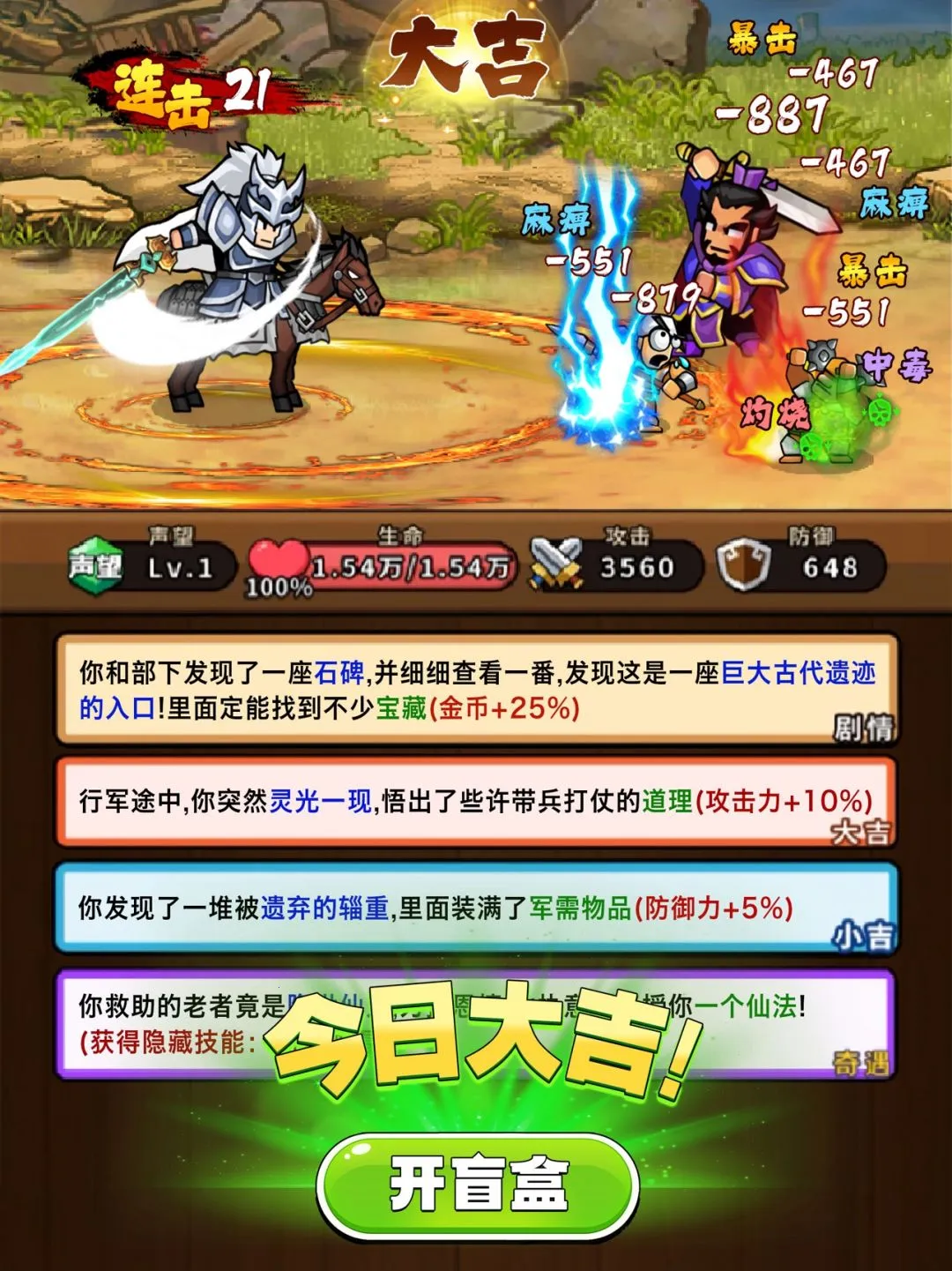 想体验指尖上的三国霸业吗?那就来试试《帝国史诗》吧!这是一款文字冒险类RoguelikeRPG游戏,无需复杂操作,单手就能轻松上手。在热血三国世界里,胜负全看你的选择与运气。你可以过关斩将,在战场上驰骋,利用战术击败敌人,挑战最终BOSS。游戏玩法多样,有多种模式任你选,能让你酣畅淋漓地战斗。
