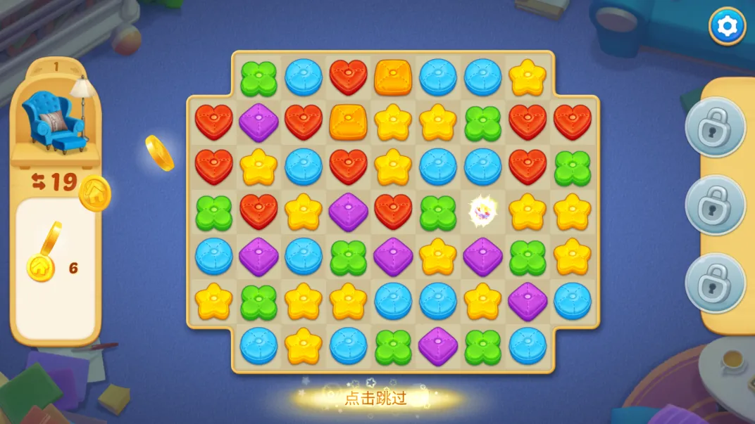 1. 采用经典三消玩法,消除相同物品完成关卡目标,简单有趣。