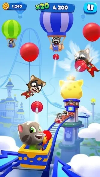 《汤姆猫的爆炸公园2》是一款超有趣的游戏!它能满足你对趣味冒险游戏的需求。在这游戏里,汤姆猫和朋友们要开放自己的主题公园啦,可一群浣熊土匪来搞破坏,把游乐设施都弄坏了。你得帮汤姆拯救公园,通过点击射击炸掉浣熊,从各种酷炫武器如泡泡枪、泡泡龙等中选择。还要找回被偷走的珍贵金齿轮修复景点,控制帽子玩并击败讨厌的浣熊队长,解锁新区域赢免费奖励。击败的队长越多,发现的内容越丰富。探索全新主题世界,追逐浣熊,穿越奇幻土地、丛林和狂野西部。每次解锁新世界还能发现新角色。它玩法简单易上手,是点触式操作,所有年龄段玩家都能快速融入。而且奖励丰厚,关卡超多等你来挑战,能给你带来无尽的欢乐和刺激体验,快来下载开启这场精彩冒险吧!