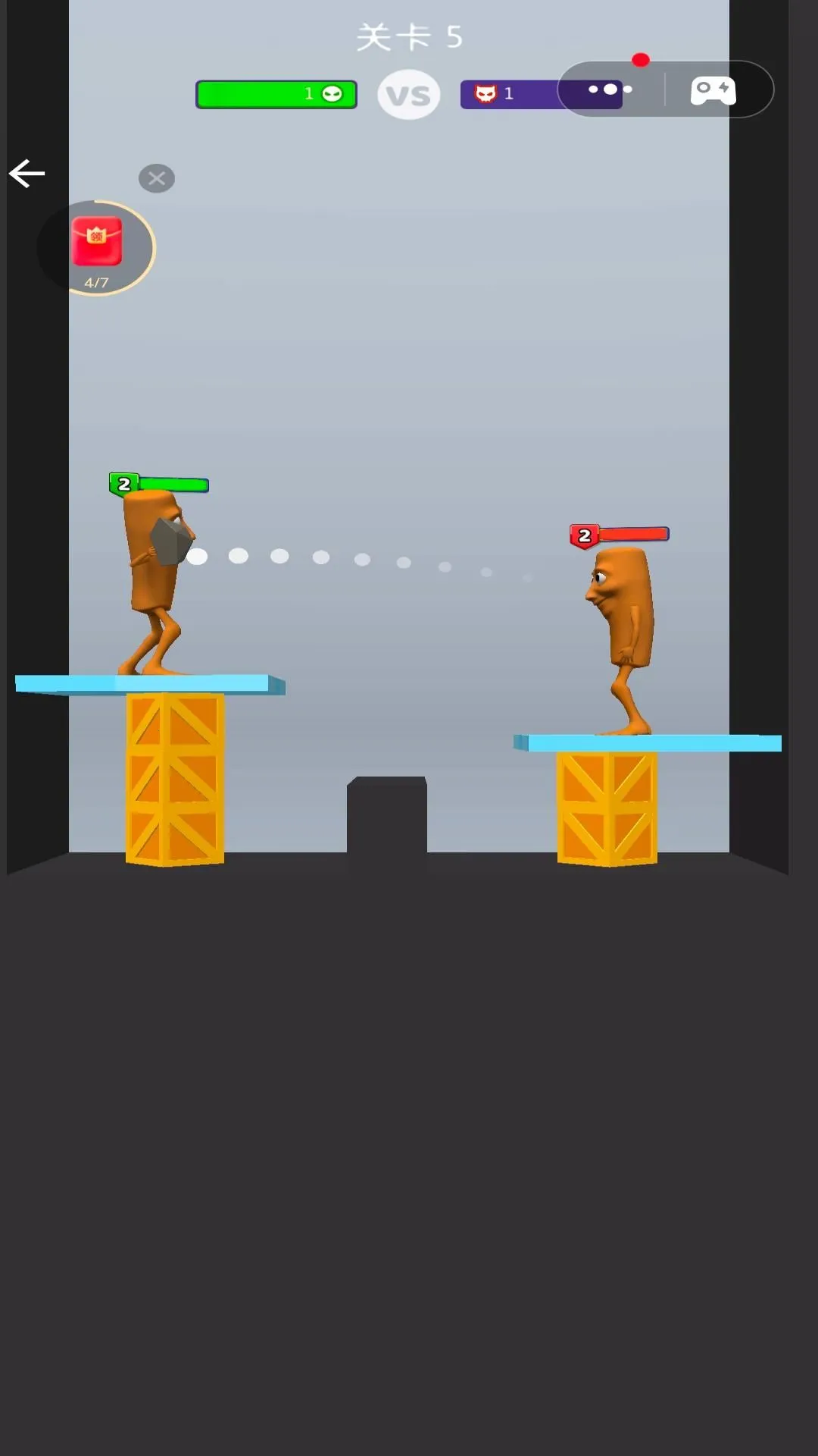 战斗风格独特,以山海经为背景,火柴人角色搭配现代武器,古今混搭很魔性。物理投射战斗机制新颖,拖动投掷武器攻击,利用抛物线和陷阱伤害对手。轻量级对抗,单局时长短,伤害超 100 结束战斗。