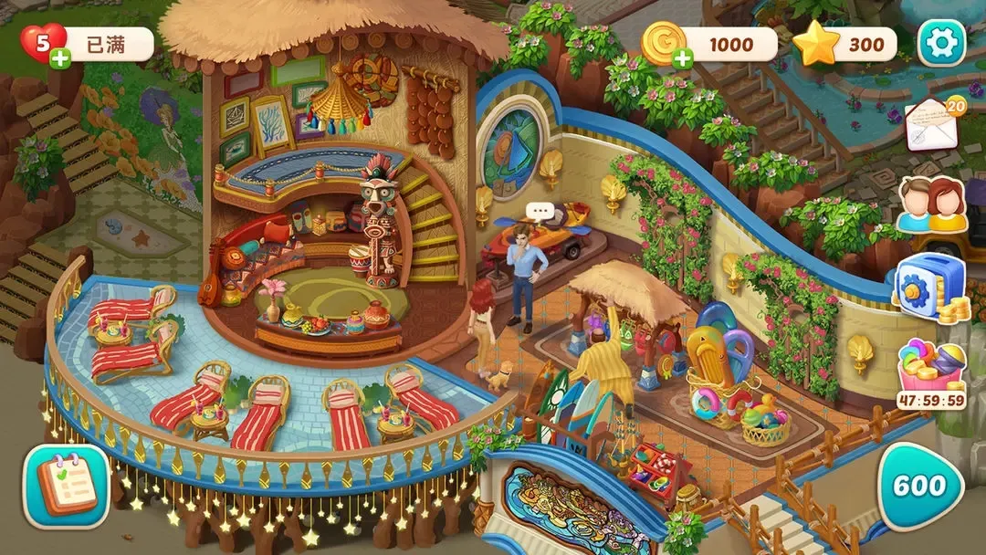 玩法上,三消与解谜完美结合,超过6000个精心设计的关卡,既保证了新鲜感又富有挑战性。通过完成三消关卡获取资源装饰升级庄园,还能与形形色色的角色互动,经历充满惊喜与爱情的故事。游戏中的家具选项丰富,能自由打造独特风格的庄园。